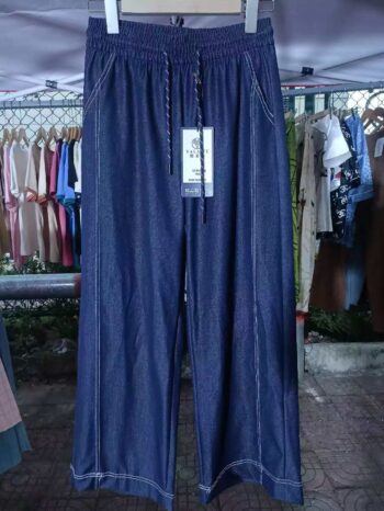 ရာဘာခါးပတ်ပါတဲ့ ချောင်ချောင်ဂျင်းဘောင်းဘီ(宽松-松紧牛仔裤)